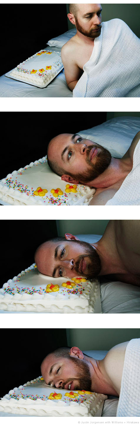 (via Justin Jorgensen) “In 2007 I worked with photographers Williams + Hirakawa to create a concept piece of me sleeping on a sheet cake. I though these cakes looked like pillows, and there’s the obvious play on ‘sweet dreams.’
