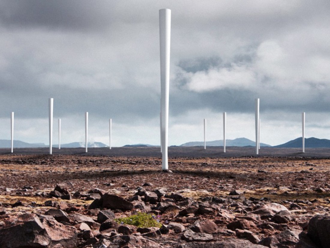 Vortex, a startup from Spain, has developed the tall sticks known as Bladeless — white poles jutting out of the ground, that are built so that they can oscillate. They do so as a result of the way that the wind is whipped up around them, using a phenomenon that architects avoid happening to buildings and encouraging it so that the sticks shake.